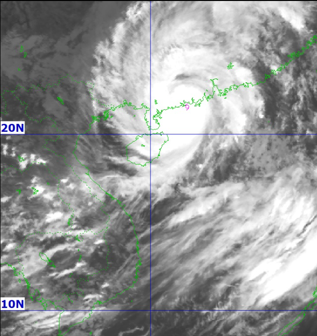 Vị trí tâm bão: Khoảng 21.6 độ Vĩ Bắc; 112.1 độ Kinh Đông, cách Móng Cái (Quảng Ninh) khoảng 450km về phía Đông.