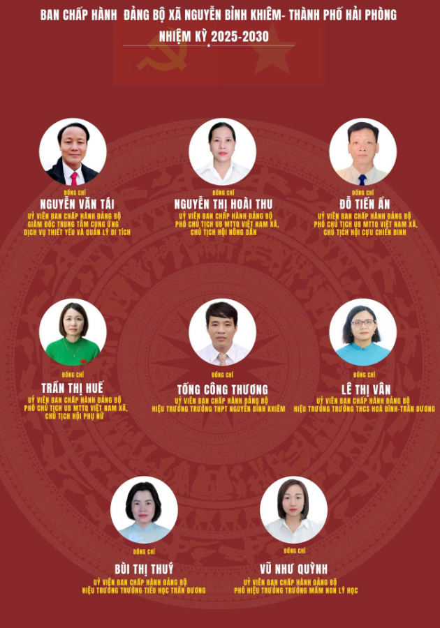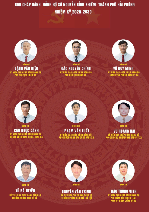 Chân dung các đồng chí tham gia Ban Ban Chấp hành Đảng bộ xã Nguyễn Bỉnh Khiêm - Thành phố Hải Phòng, nhiệm kỳ 2025-2030.